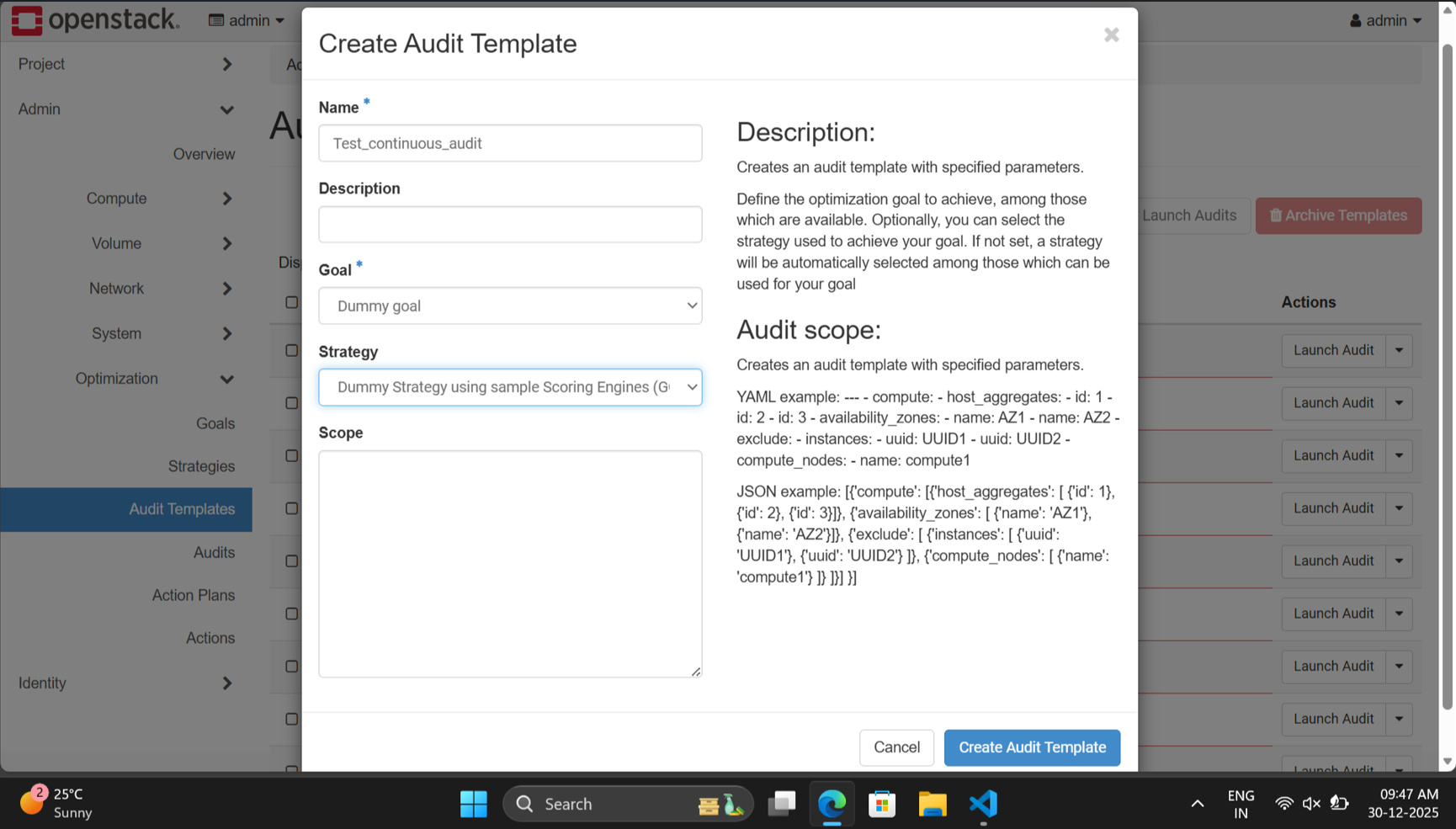 I did a quick test in my environment and continuous audits works in both *master* and *stable/2024.2 *branches. I was also using the dashboard from *master *branch for both tests. I created Audits using an audit template as shared, with *dummy with scorer *strategy. The audit went to the ONGOING state right away, and proposed an action plan. @Mohd you may want to check the details of your Audits to get more info about Created Date and Next Run Time (the later may be only available using the python-watcherclient) For reference in my env: watcher stable/2024.2: 56dae607 (HEAD -> stable/2024.2, origin/stable/2024.2) [stable-only] Consolidate and improve Zuul CI job definitions watcher master: 1d32e734 (HEAD -> master, origin/master, origin/HEAD) Retry calls to nova API when connection errors are detected watcher-dashboard master: aaebb77 (HEAD -> master, origin/master, origin/HEAD) Merge "Adopt Ruff for security; remove Bandit and fix style" Att, On Tue, Dec 30, 2025 at 1:24 PM Sean Mooney <smooney@redhat.com> wrote: