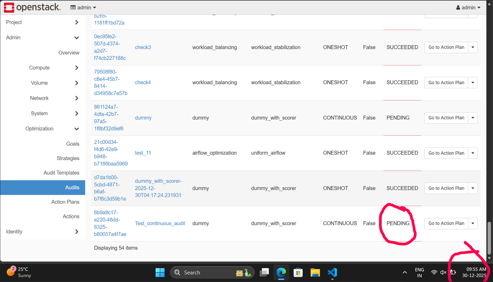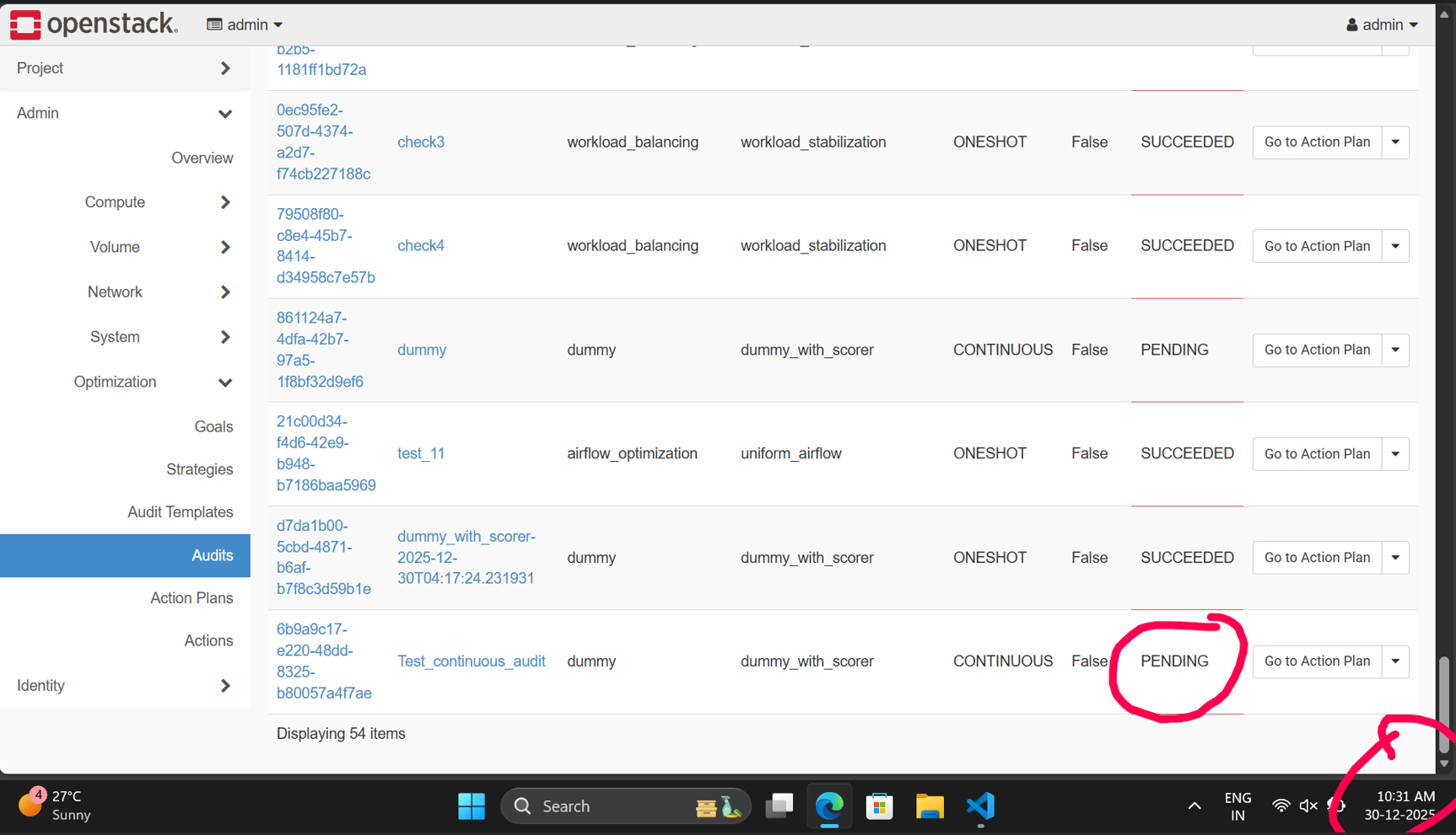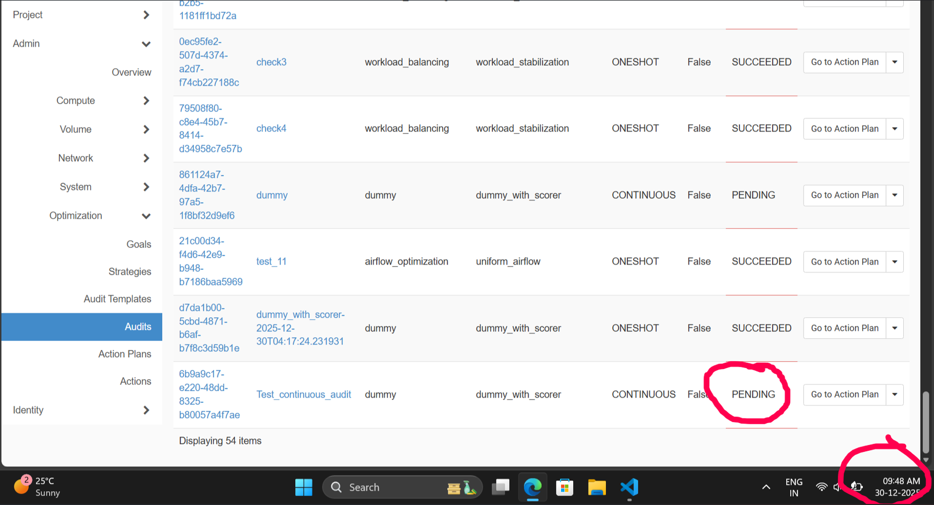 I am facing an issue with *Continuous Audits* in Watcher. After creating the audit with an interval, the audit remains in the *PENDING* state and does not generate any action plans.
